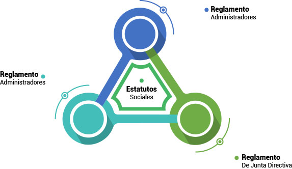 Los estatutos sociales dan el direccionamiento de la empresa y los reglamentos de accionistas, reglamento de la junta directiva y el reglamento de administradores dan las funciones y responsabilidades para cumplir con el objeto social de la empresa.